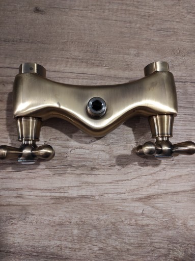 Przedmiotem sprzedazy jest bateria natryskowa brąz. Bateria jest nie kompletna i widocznymi zaciemnieniami pod warstwą lakieru.