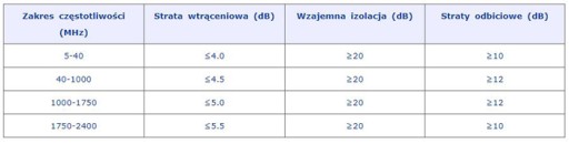 - współczynnik ekranowania: 5-2400MHz ≥100dB