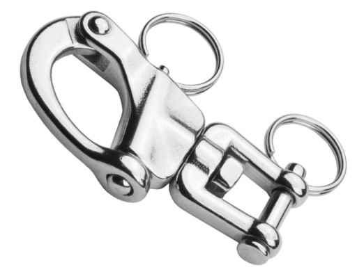 Szekla zatrzaskowa (snapszekla) wykonana ze stali kwasoodpornej A4. Idealne zastosowanie przy zapinaniu szotów grota lub foka zamiast tradycyjnej szekli.