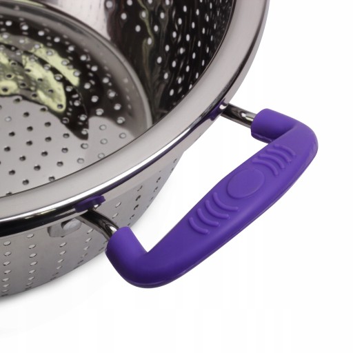 Durszlak Kamille został wyprodukowany z wysokiej jakości stali nierdzewnej. Posiada mocne i szerokie silikonowe uchwyty, które zapewniają stabilny i pewny chwyt w trakcie przenoszenia.