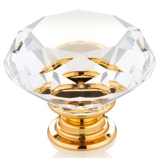 МЕБЕЛЬНАЯ РУЧКА КРИСТАЛЛ, бриллиант 40 мм, ЗОЛОТО