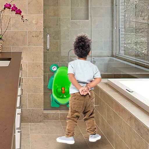 Pisuar, nocnik dla dziecka w kształcie żaby. Idealny produkt do nauki sikania w pozycji stojącej, bez konieczności stosowania specjalnych podestów do sedesu.Zapewni dziecku mnóstwo frajdy i nauczy go celowania w sam środek podczas załatwiania potrzeb fizjologicznych.