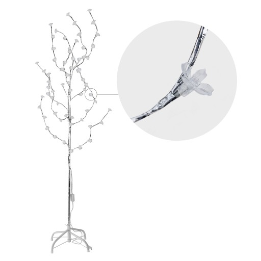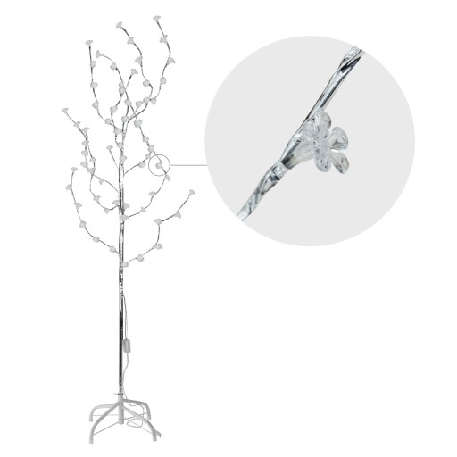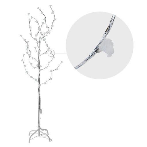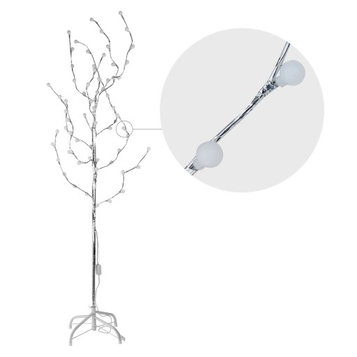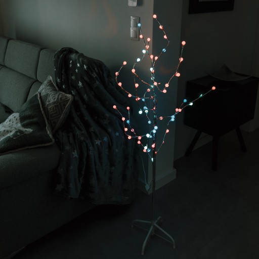 Oświetlenie to bardzo ważny element wyposażenia każdego domu, o którym warto pamiętać podczas aranżacji. Może całkowicie zmienić wnętrze i stworzyć w nim idealną atmosferę. Wysokie drzewko LED wykonane z metalowego stelaża pokrytego srebrną dekoracyjną taśmą. Wyposażone w 72 mocne, energooszczędne diody LED, udekorowane uroczymi wzorami – kuleczkami i trzema rodzajami kwiatków. Drzewko świeci w 3 kolorach RGB – zielonym, czerwonym i zielonym, migając naprzemiennie. Przed pierwszym użyciem należy ułożyć gałązki tak, aby były w pełni rozłożone i dawały efekt 3D. Lampka zasilana energią elektryczną 230V. Drzewko stoi stabilnie dzięki metalowej podstawce dołączonej do zestawu.
