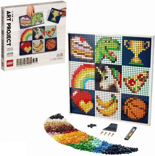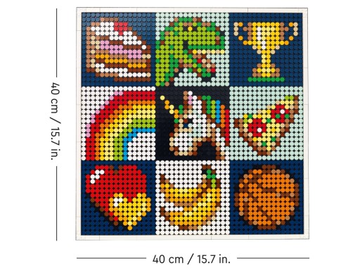 Ten zestaw pozwoli Ci zacieśnić więzi z rodziną i przyjaciółmi. Zawiera łatwą do zbudowania paletę, która pozwala dopasować kolorystycznie płytki, oraz po dziewięć propozycji obrazów w każdej z czterech kategorii: jedzenie, wzorki, ikony i zainteresowania. Gotowe obrazy można połączyć w jedno artystyczne dzieło. Możecie także połączyć siły i wspólnie zbudować duży wizerunek kultowej minifigurki LEGO.