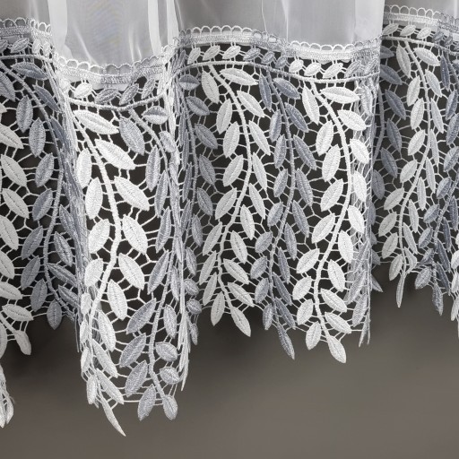 Штора 500х220 вуаль-лента ШИРОКОЕ гипюровое кружево ЛИСТЬЯ БЕЛОЕ СЕРОЕ 30см