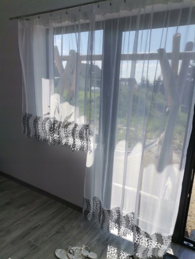 Szerokie zdobienie o szerokości aż 30cm dodaje uroku i elegancji firanie.
