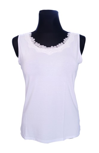 - gładka koszulka na szerszych ramiączkach ozdobiona została delikatną koronką przy dekolcie