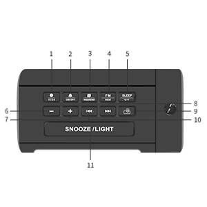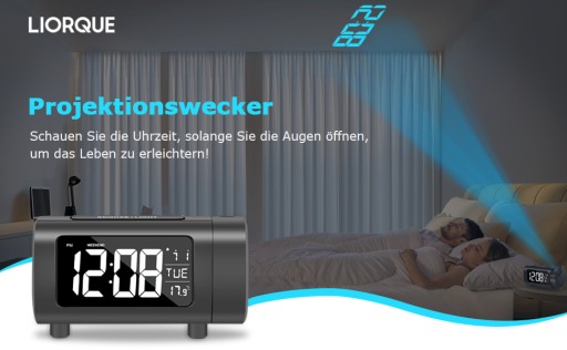 - Ustawianie radia FM i czasu wyłączenia - Cyfrowy budzik Liorque umożliwia aktywację 15 stacji radiowych FM (76,0 MHz – 108,0 MHz) i zapisywanie do 15 ulubionych stacji radiowych w "MEM". Jednocześnie można ustawić funkcję timera na radio do 90 minut (5 → 90 minut), radio wyłącza się automatycznie.