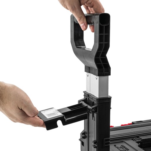 - Ergonomiczny uchwyt – Teleskopowy uchwyt odciąża stawy oraz zapewnia ergonomiczną postawę ciała podczas transportu.