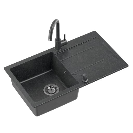 myQ PARIS 11 кухонная мойка, гранит, черный, комплект смесителей, 77x44 см