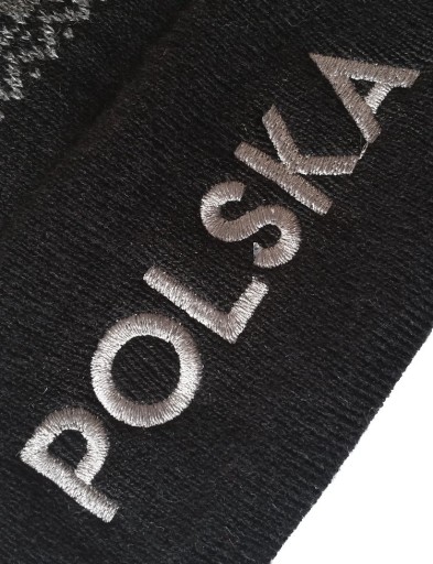 Ciepła czapka do podstawa na zimowy chłód, który ominie Was dzięki podwijanej dolnej części czapki, dającej podwójna ochronę przed zimnem. Haftowany motyw to prosty, czytelny napis - Polska, wykonany szarą nicią, jasno wskazujący, że pamiętamy skąd jesteśmy i czujemy więź z własną Ojczyzną - Polską. Czapka świetnie sprawdza się jako elegancki dodatek np. do czarnych, grafitowych czy szarych kurtek. Klasyczny design łączy kolory: czarny i grafitowy, z dominującą przewagą tego pierwszego, i wyszytym, charakterystycznych dla świątecznego okresu wzorkiem z grafitowego materiału. Czapka idealnie pasuje zarówno jako nakrycie głowy zarówno dla Pań, jak i dla Panów. Sam jej przekaz jasno daje do zrozumienia, że jest idealna dla każdego komu bliskie są wartości narodowe i tradycja. Sprawdzi się doskonale przed wszystkim w codziennym użytku.