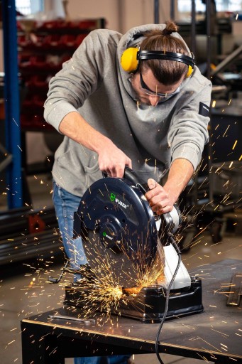 Przecinarka wyposażona w wydajny silnik o mocy 2950 W świetnie sprawdzi się przy cięciu metalowych elementów w profesjonalnym warsztacie, a także przydomowym garażu