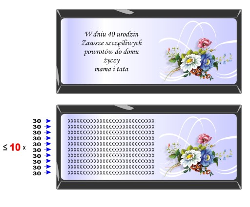 Maksymalna długość Twojej dedykacji to 300 liter, znaków, spacji rozłożonych w 10 rzędach (jak na schemacie obok)