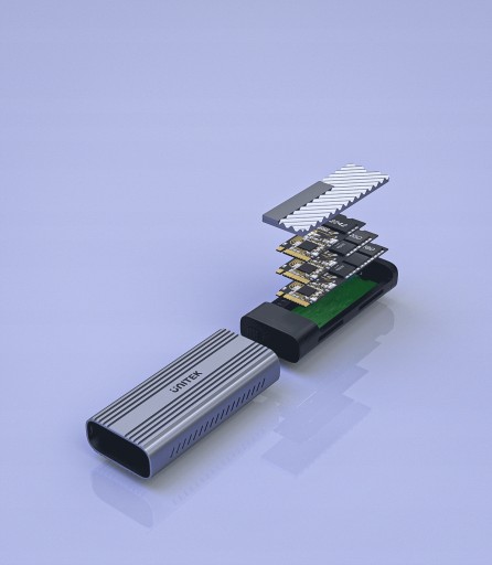 Obudowa nie tylko ochroni dysk przez zewnętrznymi uszkodzeniami, ale także świetnie odprowadza ciepło ze względu na wysoką jakość materiału, dołączone podkładki termiczne, jak również przemyślany design z aluminiowymi żeberkami. Niewielkie rozmiary pozwolą schować ją nawet do małej, damskiej torebki. Pomyślano także o trybie Autosleep celem zwiększenia oszczędności baterii – tryb Autosleep uruchamia się po 30 minutach bezczynności. Slot na dysk jest wysuwany i zawiera zabezpieczenie chroniące przed przypadkowym wysunięciem. Dołączony, płaski kabel jest wytrzymały oraz będzie służył przez lata.