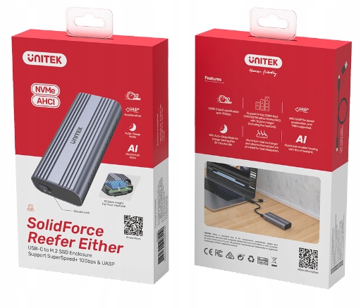 Obudowa zapewnia transfer danych z prędkością do 10Gbps. Działa z technologią UASP (USB Attached SCSI Protocol) oraz instrukcją TRIM (ATA Data Set Management Command).