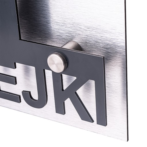 - Kolor srebrny (INOX) tył, Antracyt (RAL7016) personalizacja