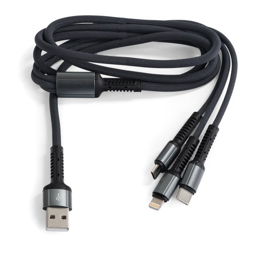Trzy różne końcówki: microUSB, USB-C i Apple Lightning 8pin pozwolą na przechowywanie i transport jednego wygodnego kabla zamiast trzech różnych. Jest to wygodne rozwiązanie, jeśli posiadamy urządzenia z różnymi gniazdami. Uniwersalny kabel sprawdzi się w podróży, ponieważ zajmują mało miejsca.