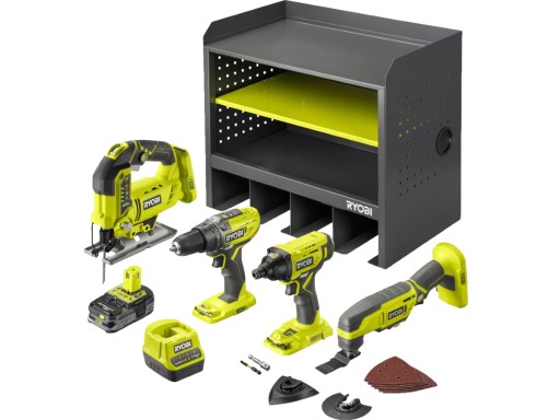 Dla świeżo upieczonych właścicieli domów lub wszystkich, którzy planują remont: w jednym pakiecie są dostępne cztery narzędzia o dużej mocy i elegancka szafka do przechowywania. Wkrętarka marki Ryobi One+, wkrętarka udarowa, narzędzie wielofunkcyjne i wyrzynarka są zasilane jednym akumulatorem dołączonym do zestawu i razem pozwalają wykonywać mnóstwo ważnych zadań!