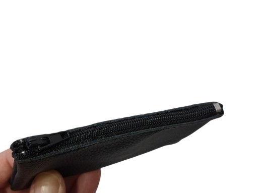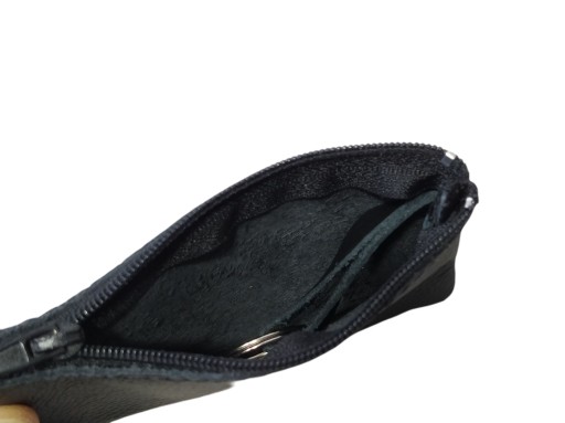 Posiada zamek błyskawiczny oraz kółeczko do zamocowania kluczyka samochodowego.