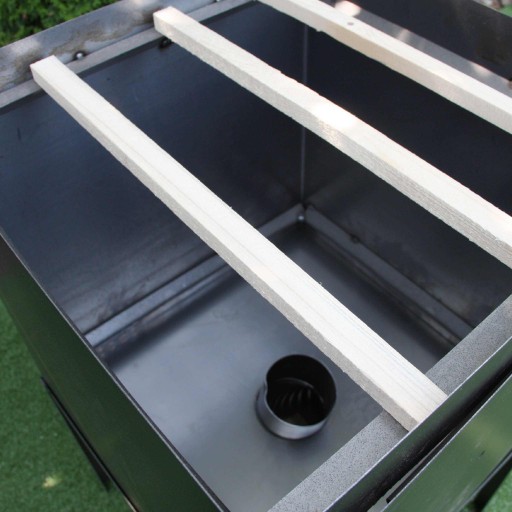 - Wszystkie elementy po zakończonym wędzeniu mieszczą się w metalowej komorze wędzarniczej. Zapewnia to mobilność wędzarni