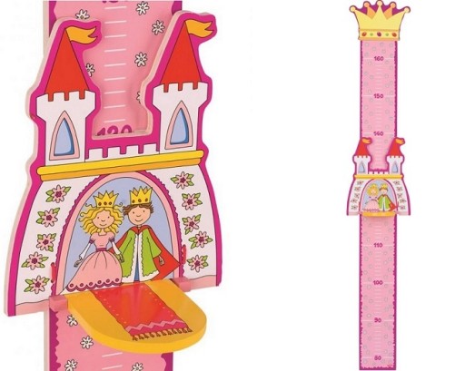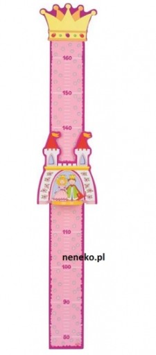 Miarka wzrostu z motywem pięknej pary książęcej z ruchomą półeczką ułatwiającą zaznaczanie wzrostu malucha. Miarka posiada skalę do 160 cm, dzięki czemu mogą z niej korzystać również większe dzieci.