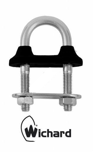 Ucho cumowe ze stali nierdzewnej 316L oraz z wkładką PVC w kolorze czarnym.
