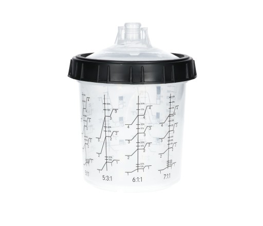 System kubków do mieszania, lakierowania, napełniania i przechowywania farb i lakierów.