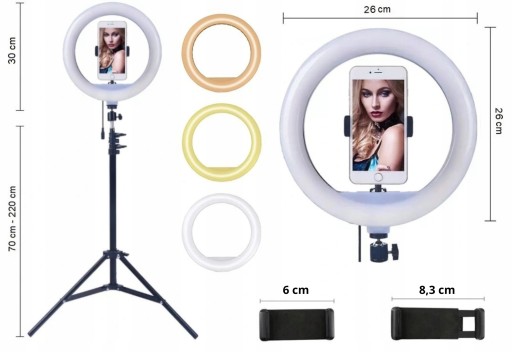 UCHWYT STATYW NA TELEFON LAMPA LED RING PIERŚCIENIOWA + PILOT NA KABLU