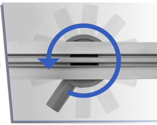 Opracowany został w oparciu o wieloletnią produkcję odwodnień liniowych. Największą jego zaletą jest możliwość ustawienia rury odpływowej w dowolnym kierunku - jest to bardzo pomocne przy montażu.