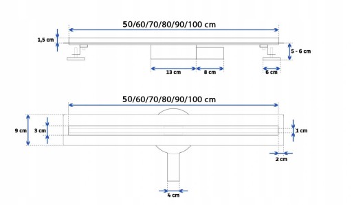 Maskownica mierzy zaledwie 1,5 cm natomiast całkowita szerokość widocznego elementu po zamontowaniu odpływu to 3,2 cm.