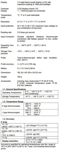 - Akcesoria: etui, bateria, instrukcja, sondy typu K: TF-50 i TF-55