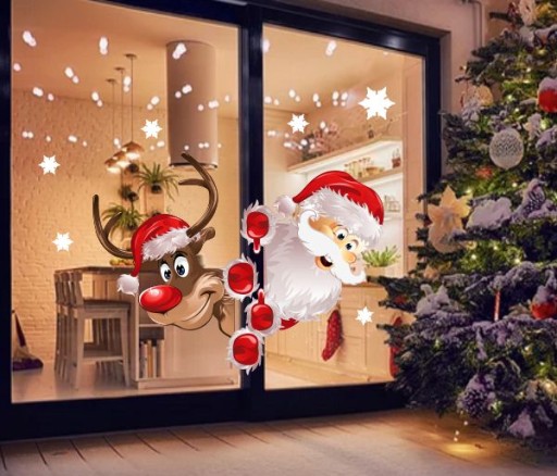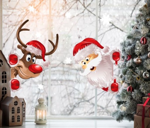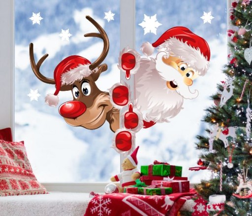 Рождественские наклейки на окна Дед Мороз 50х35см