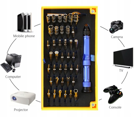 SERWISOWY ZESTAW 63 BITÓW I NARZĘDZI DO NAPRAW ELEKTRONIKI ORAZ TELEFONÓW