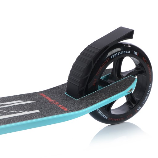 Hulajnoga wyposażona jest w nożny hamulec, który jest bardzo intuicyjny podczas jazdy. Bezpieczeństwo produktu zwiększają również błotniki, które zapobiegają ochlapaniu oraz antypoślizgowy podest gwarantujący stabilną pozycję podczas jazdy. Dodatkowo kierownica wyposażona jest w uchwyty pokryte gumą, które zapewnią pewny chwyt oraz nie powodują otarć.