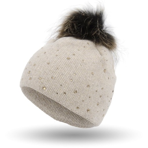 CZAPKA ZIMOWA WYKONANA Z KASZMIRU, POMPON Z JENOTA