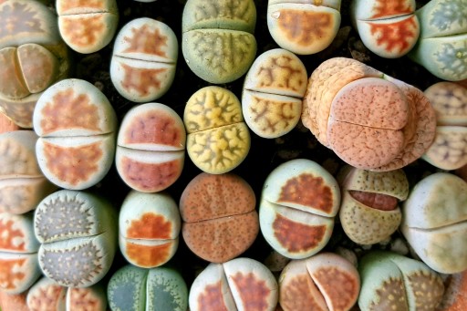 ŻYWE KAMIENIE [ LITHOPS ] - TO ROŚLINY DO ZŁUDZENIA PRZYPOMINAJĄCE KAMYKI I KAWAŁKI SKAŁ. WSPANIAŁEGO OZDOBNEGO CHARAKTERU ŻYWE KAMIENIE NABIERAJĄ JESIENIĄ, GDY ICH KULISTE LIŚCIE OTWIERAJĄ SIĘ I POJAWIAJĄ SIĘ BŁYSZCZĄCE, JEDWABISTE KWIATY KOLORU BIAŁEGO LUB ŻÓŁTEGO. LITOPSY SĄ DEKORACYJNE ZARÓWNO Z KWIATÓW, JAK I Z LIŚCI. ICH LIŚCIE SĄ ELIPTYCZNE, MIĘSISTE, GRUBE I ROZDZIELONE WĄSKĄ SZCZELINĄ. NA PEWNO ZROBI FURORĘ WŚRÓD ZNAJOMYCH.