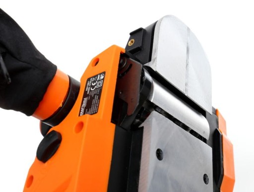 ✅Heblarka wyposażona jest w regulację strugania głębokości od 0-3mm. Regulacja znajduje się zaraz pod uchwytem prowadzącym i regulowana jest za pomocą gałki obrotowej.
