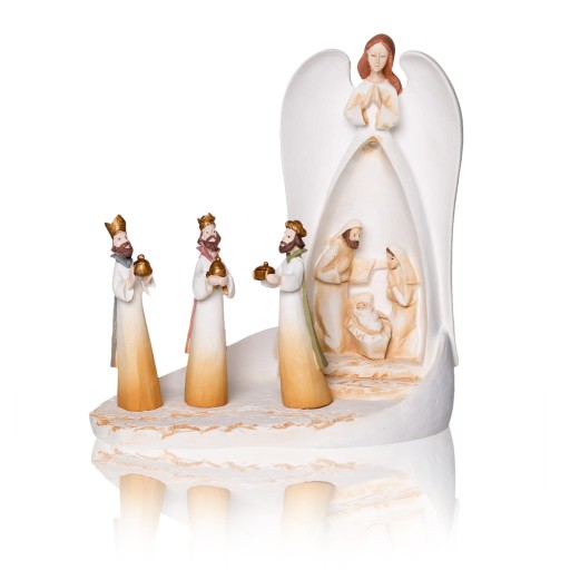 Centralnym punktem szopki jest Anioł Stróż, w którego sukni znajduje się relief, przedstawiający Świętą Rodzinę. Dopełnieniem szopki są ruchome figury Trzech Króli z darami, które można dowolnie zestawiać. Kremowa kolorystyka szopki oraz LED-owe podświetlenie to cechy wyróżniające kolekcję Bianco.
