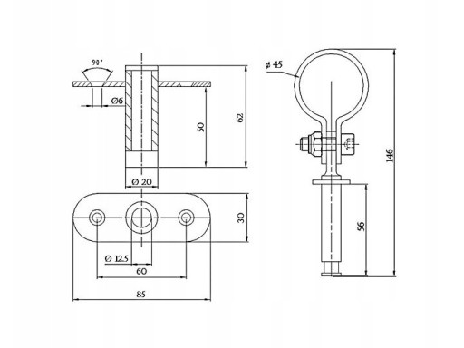 - Przeznaczona do wioseł o średnicy ok 44-45 mm (po zastosowaniu opaski gumowej możliwość stosowania do wioseł o mniejszej średnicy.