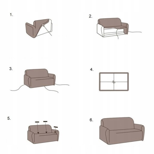 W zestawie otrzymacie Państwo 6 piankowych wałeczków, które ułatwią dopasowanie pokrowca do mebla. Po założeniu pokrowca należy obwijając materiał wokół wałeczków, wciskać go w szczeliny kanapy.