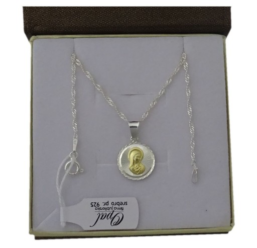 Śliczny srebrny łańcuszek w komplecie z medalikiem Matki Boskiej.