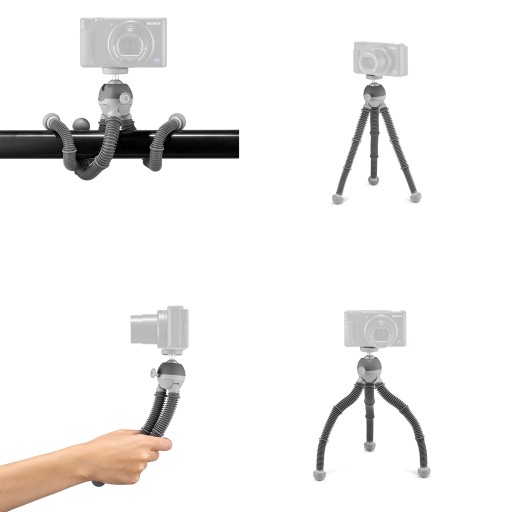 Dzięki elastycznym nogom statyw jest bardzo uniwersalny. Jak go użyjesz zależy tylko od Ciebie! Można go wygodnie trzymać w ręce, postawić na dowolnej powierzchni, czy zawiesić na gałęzi drzewa. A może masz inny pomysł? Wykorzystaj swoją kreatywność!