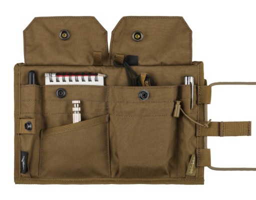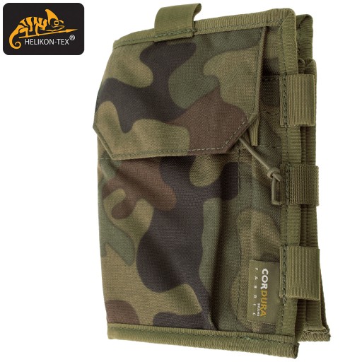 Helikon Map Case to niewielka kieszeń, która pozwoli wygodnie przenosić mapę w zamykanej na zamek, przezroczystej kieszeni i jednocześnie ochroni ją przed niekorzystnymi warunkami pogodowymi. Kieszeń została wykonana w całości z Cordury® 500D. Na jej zewnętrznej stronie znajdują się dwie zamykane na napy kieszenie oraz dwie otwarte kieszenie. Co więcej, na jednym z boków znajdują się pętle na długopis, sharpie itd. Gdy nie jest używany, Map Case składany jest na pół i zabezpieczany za pomocą napa.