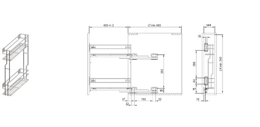 kosz z prowadnicami, elementy montażowe, szablon- instrukcja