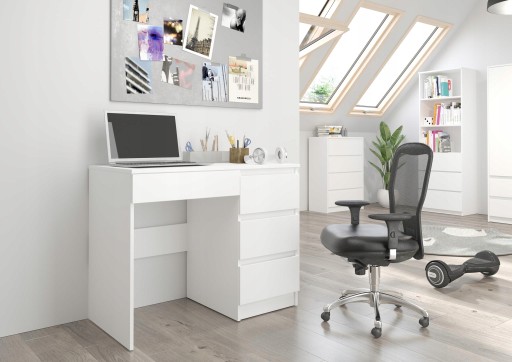 Stylowe biurko z kolekcji MODERN, stworzony dla ludzi, którzy cenią sobie nowoczesny styl i elegancję. Odnowi wnętrze każdej pracowni, biura czy pokoju młodzieżowego. Konstrukcja jest minimalistyczna, ale solidna i trwała. Ergonomiczne wymiary zapewniają swobodne umeblowanie pomieszczenia.