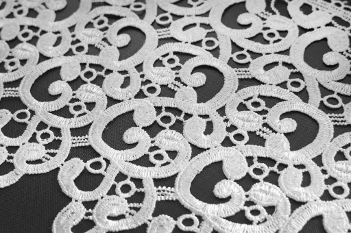 Zdobiona gipiura, będąca elegancką odmianą koronki weneckiej. Daje wiele możliwości wystroju i dekoracji wnętrz. Gipiura posiada nieregularne kształty oczek i wypukłe precyzyjne wzory. To jedna z najmodniejszych ozdób okiennych, która znajduje zastosowanie zarówno w nowoczesnych, jak i klasycznych dekoracjach wnętrz.