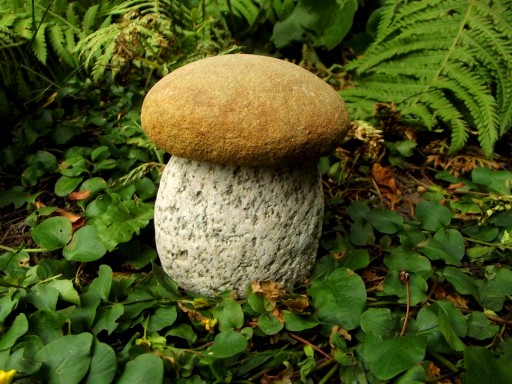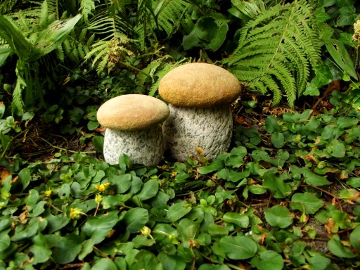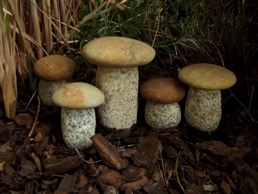 Grzybek wykonany jest z naturalnego kamienia, figurki są trwałe i odporne na warunki atmosferyczne, mogą zimować w ogrodzie. Każdy grzybek jest inny, niepowtarzalny, ustawione przy iglakach na korze czy na skalniaku wyglądają jak prawdziwe. Waga grzybka od 0,2kg do 0,6kg, wysokość od 6cm do 9cm. Na innych naszych aukcjach większe grzybki, inne rodzaje i wiele oryginalnych figurek.
