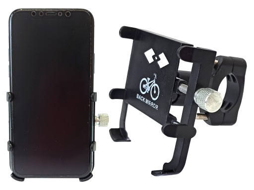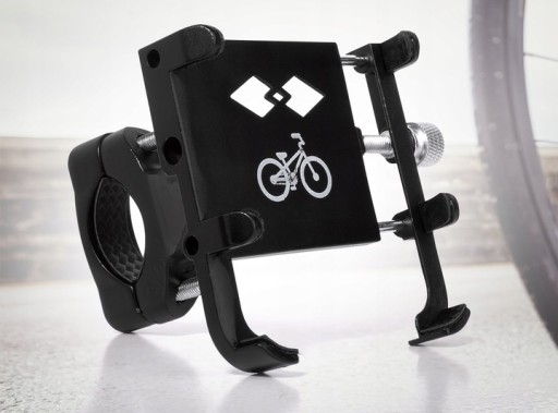Uchwyt na telefon wykorzystuje ten sam sposób jednak przy pomocy jednej śruby i dwóch metalowych prowadnic. Ramię uchwytu wysuwa się w miarę wykręcania śruby pozwalając na umieszczenie w uchwycie telefonów do 100mm szerokośći.