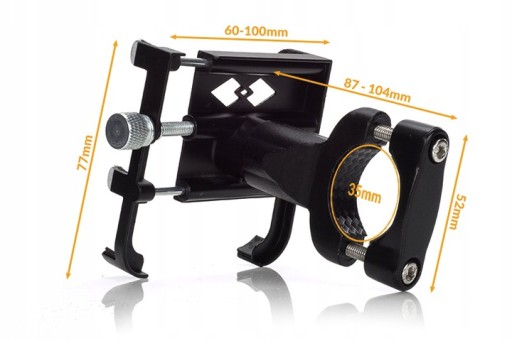 Szczęki uchwytu rozsuwają się od 60mm do aż 100mm. Aktualnie nie ma na rynku telefonu, który by taką szerokość osiągnął. Wysokość uchwytu nie ma znaczenia - uchwyt jest otwarty od góry co pozwala na zamocowanie telefonów o różnych proporcjach szerokości do wysokości.