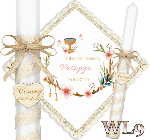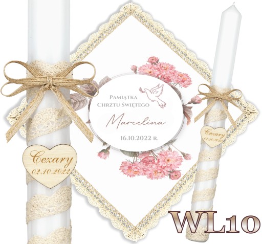Szatka i świeca do chrztu BOHO Chrzest pudełko Pamiątka Chrztu Św. Topaz WL